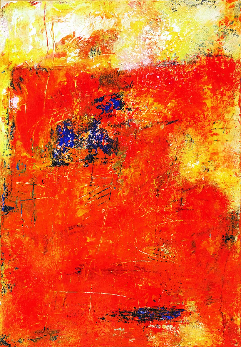 Ihre ausdrucksstarken Kompositionen entwickeln sich frei aus der Farbfläche heraus.